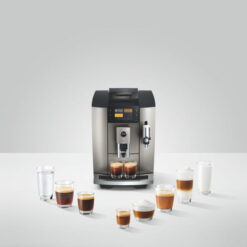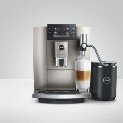 Der E8 Midnight Silver (ED) Kaffeevollautomat von JURA bietet One-Touch-Zubereitung kaffeespezialitäten und frischen Milchschaum. Das integrierte 3,5-Zoll-Farbdisplay ermöglicht eine intuitive Menüführung und schnellen Zugriff auf Getränkeoptionen.