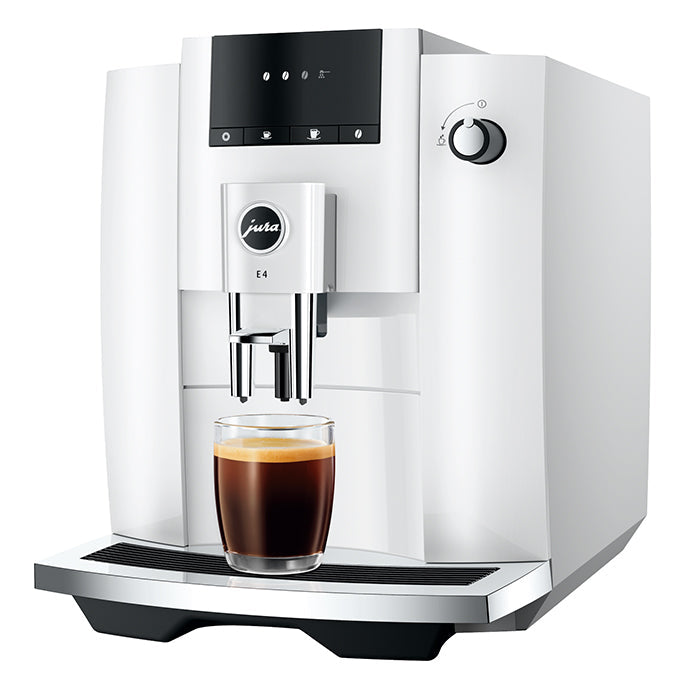Die Jura E4 – Piano White (EA) ist ein kompakter Kaffeevollautomat, der Frischkaffee direkt ohne Kapseln zubereitet. Der integrierte Professional Aroma Grinder (P.A.G.) liefert konstant feine Mahlgrade über die Lebensdauer, ergänzt durch die 8. Generation der Brühgruppe und das 3D-Brühverfahren für aromatischen Kaffee. Drei Intensitätsstufen ermöglichen individuelle Vorlieben. Die Doppel-Tassenfunktion brüht zwei Tassen gleichzeitig, jeweils frisch aromatisiert. Eine Heißwasserfunktion per Drehschalter Direktwahl liefert bis zu 300 ml Tee oder Aufguss. Wi‑Fi-Konnektivität und Steuerung über die J.O.E. App ermöglichen Fernzugriff im Haushalt.
