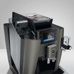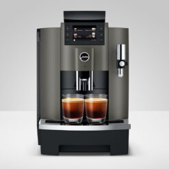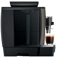 Der Jura W8 Kaffeevollautomat in Dark Inox verbindet kompakte Baugröße mit vielseitiger Kaffeeleistung für Büros, Verkaufslokale und Geschäftsräume.