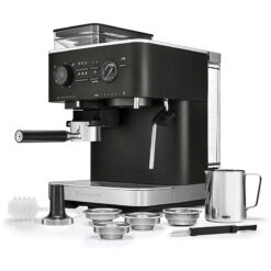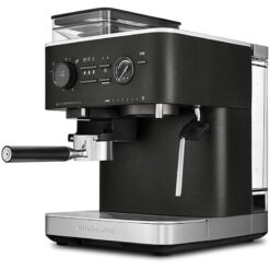 Die KitchenAid Halbautomatische Espressomaschine mit integrierter Mühle ARTISAN in Gusseisen Schwarz kombiniert Brühtechnik mit einem konischen Mahlwerk und 58-mm-Siebträger. Der 15-bar-Pumpdruck extrahiert einen aromatischen Espresso, während die Fast-Heating-Technologie Wasser zügig auf Betriebstemperatur bringt. Vorinfusion sorgt dafür, dass das Kaffeepulver gleichmäßig quillt, bevor die Extraktion beginnt. Die Smart-Dosing-Technologie passt die ideale Menge automatisch für ein oder zwei Tassen an; manuelle Anpassung bleibt möglich.